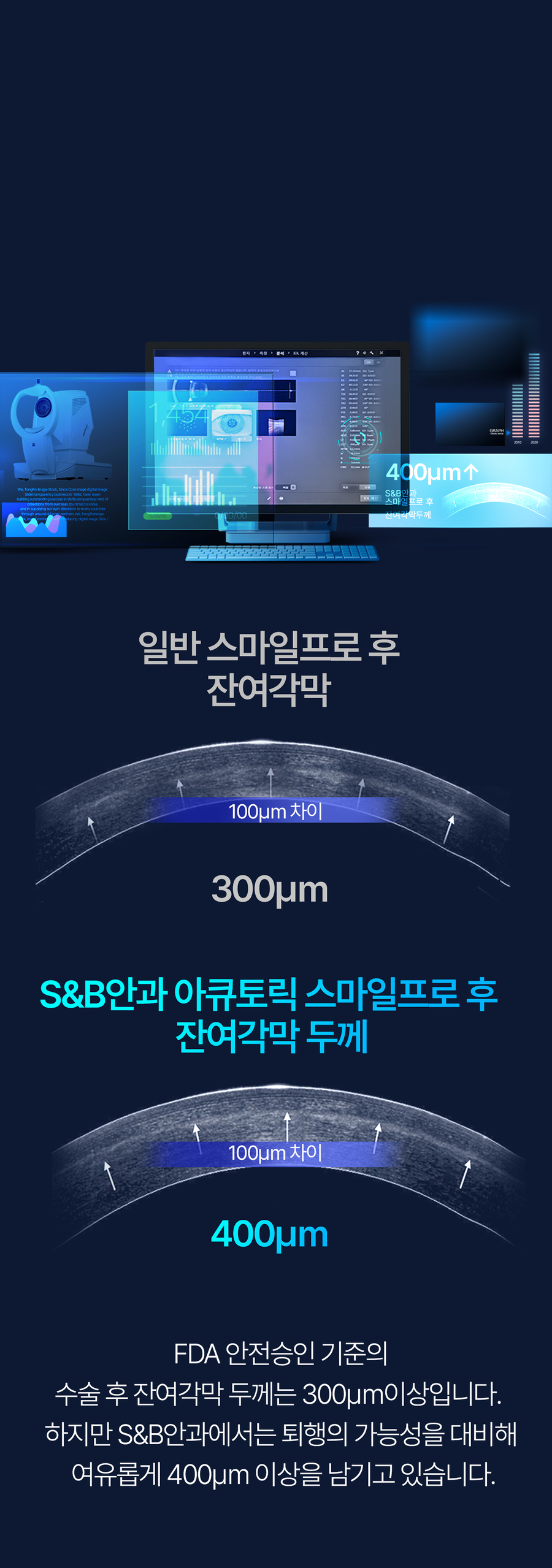 하지만 S&B안과에서는 퇴행의 가능성을 대비해 여유롭게 400㎛ 이상을 남기고 있습니다.